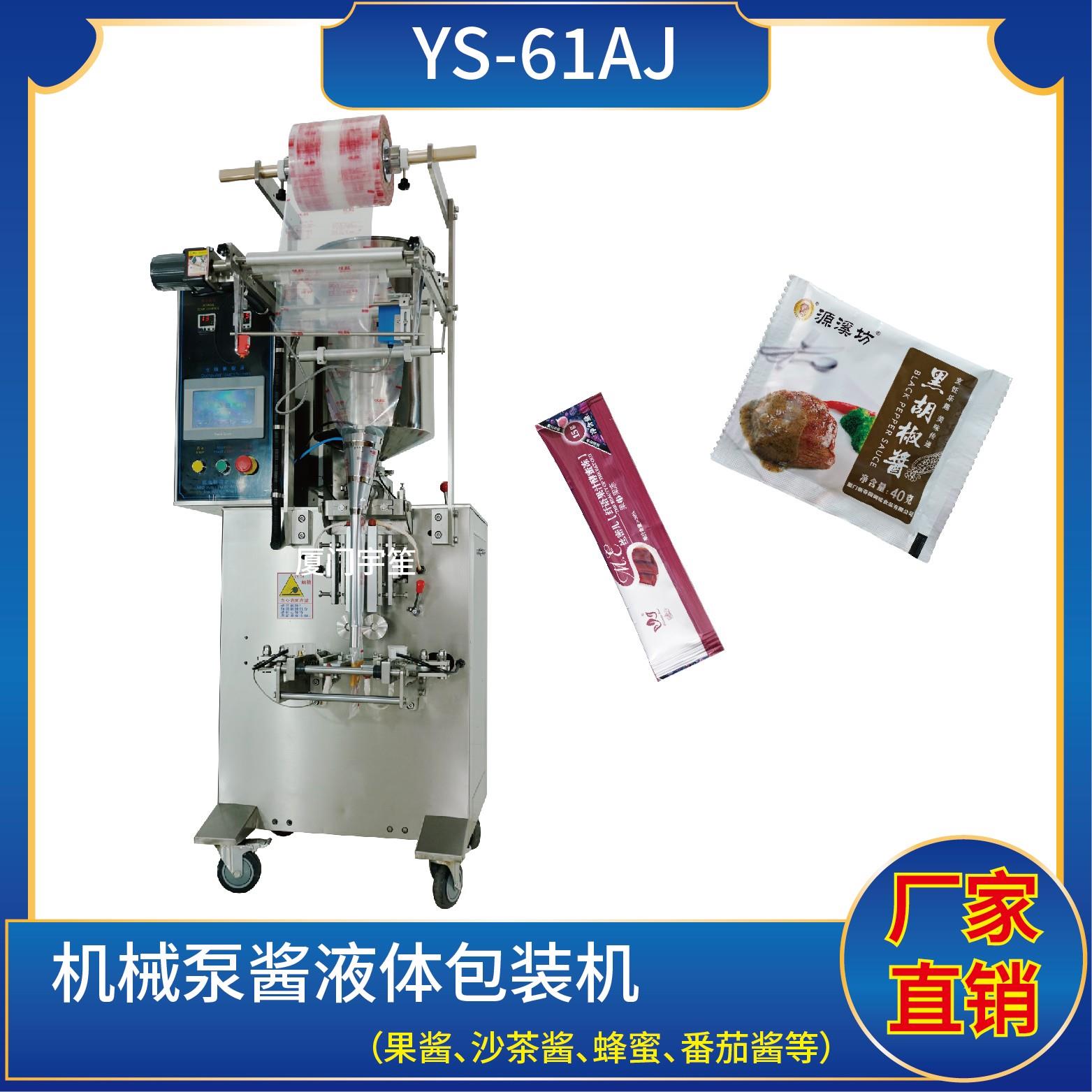 YS-61AJ 三邊封醬液體包裝機特點1、適用于食品、醫(yī)藥、化工、化妝品行業(yè)中液體、醬料物品的計量包裝。2、可自動完成制袋、計量、下料、封合、分切、計數(shù)、且可根據(jù)客戶要求配置打印批號等功能。3、觸摸屏操作,PLC 控制,驅(qū)動步進電機控制袋長,性能穩(wěn)定、調(diào)整方便、檢測準確。智能式溫控儀,PID調(diào)節(jié),保證將溫度的誤差范…