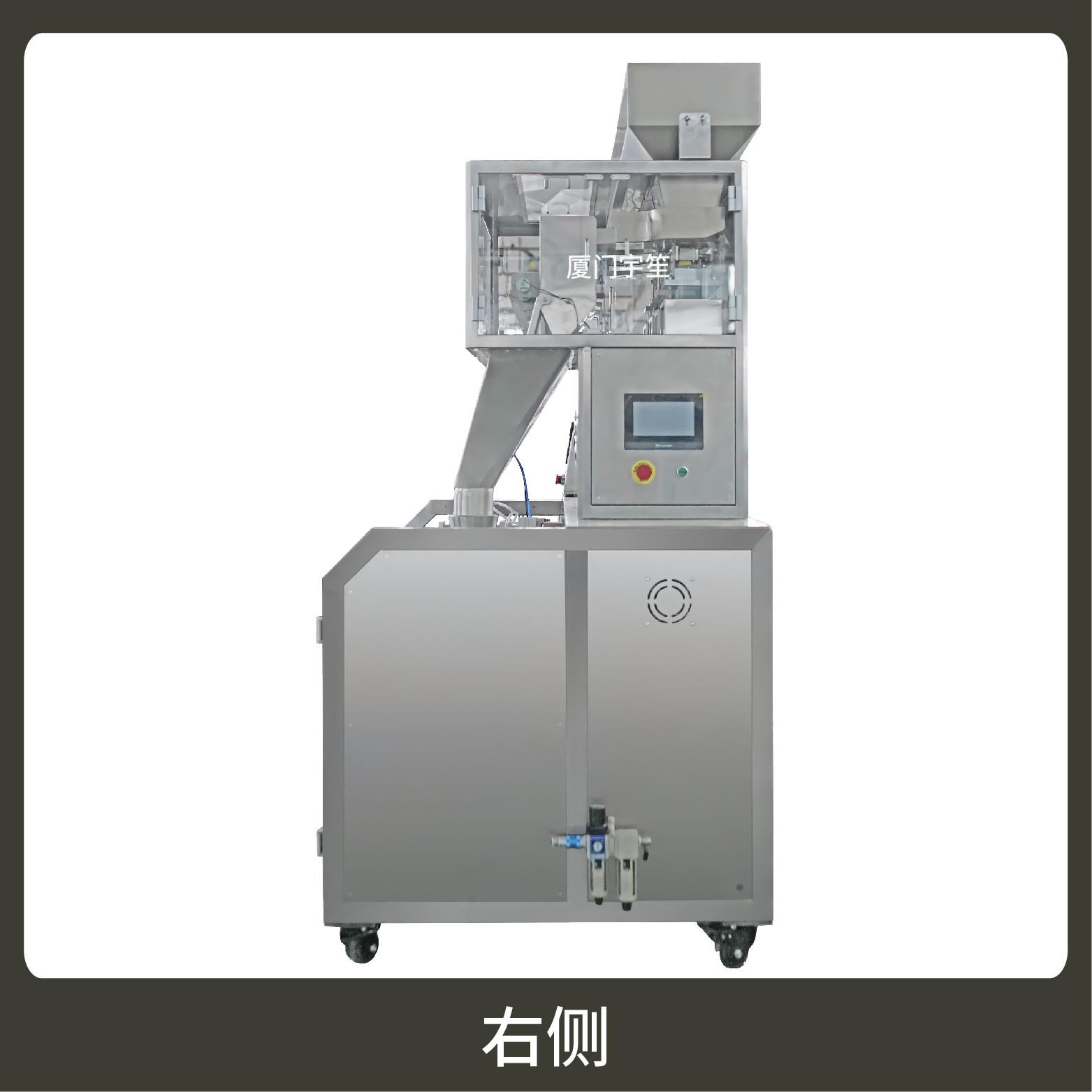 2、用于自封袋、站立袋、拉鏈袋,可抽真空、充氮?dú)狻0b流程全自動(dòng),無需人工操作??筛鶕?jù)充填物料的性質(zhì)選配不同的下料結(jié)構(gòu),且可根據(jù)客戶要求配置打印批號(hào)等功能。